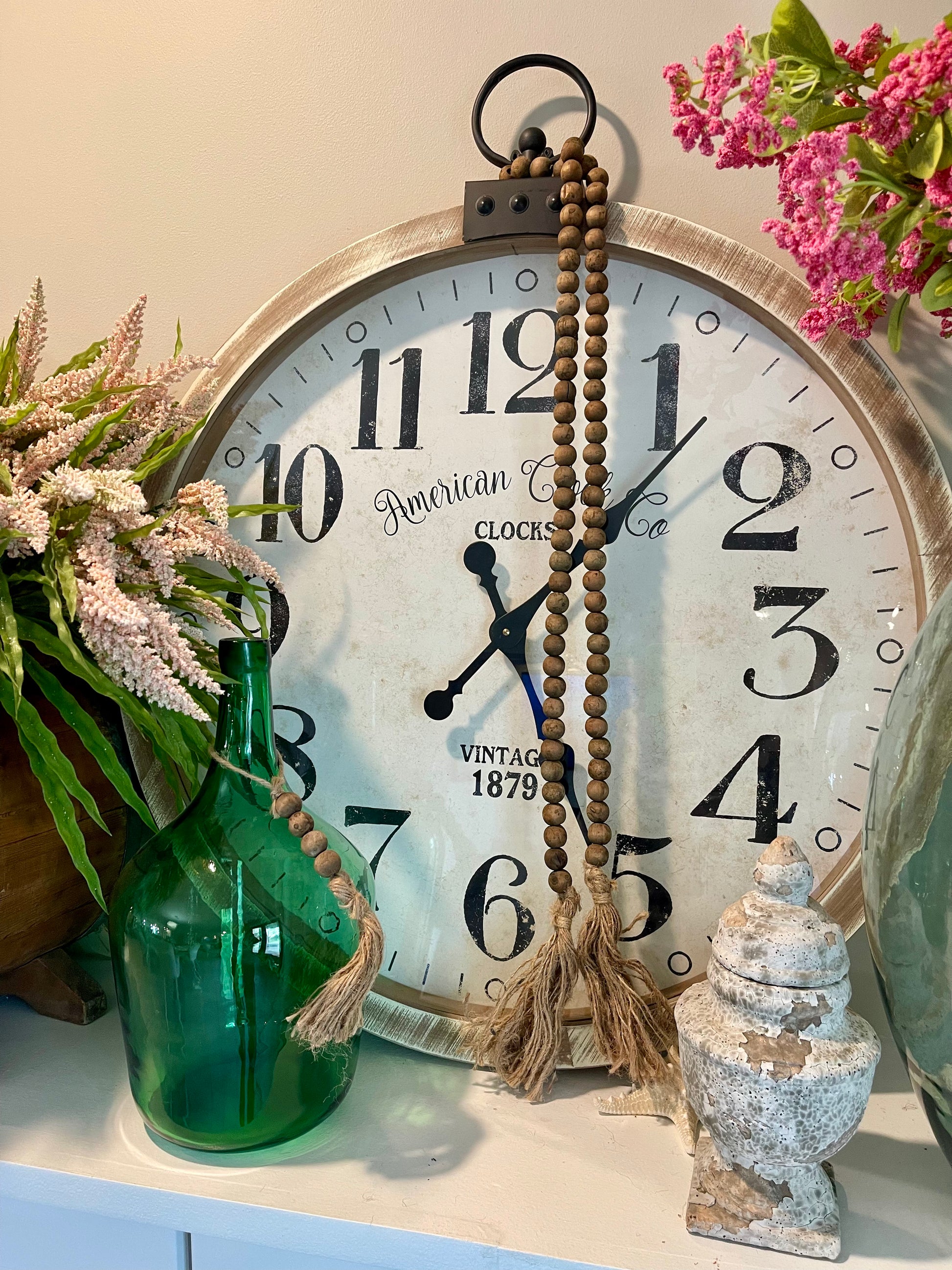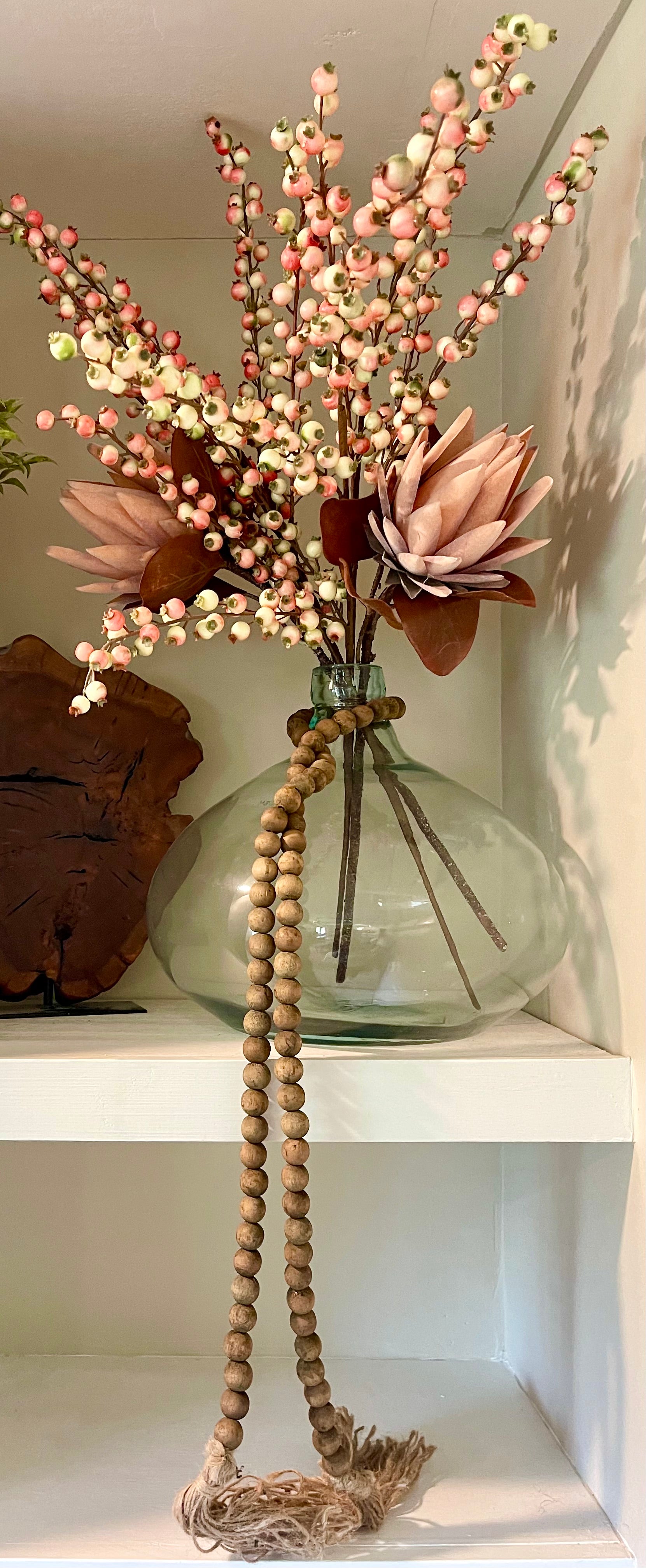 Transform your living space with this stunning 59" brown bead garland featuring a stylish twine tassel. Add a touch of charm and warmth to your vases, trays, bottles, Christmas trees, and other home decor.