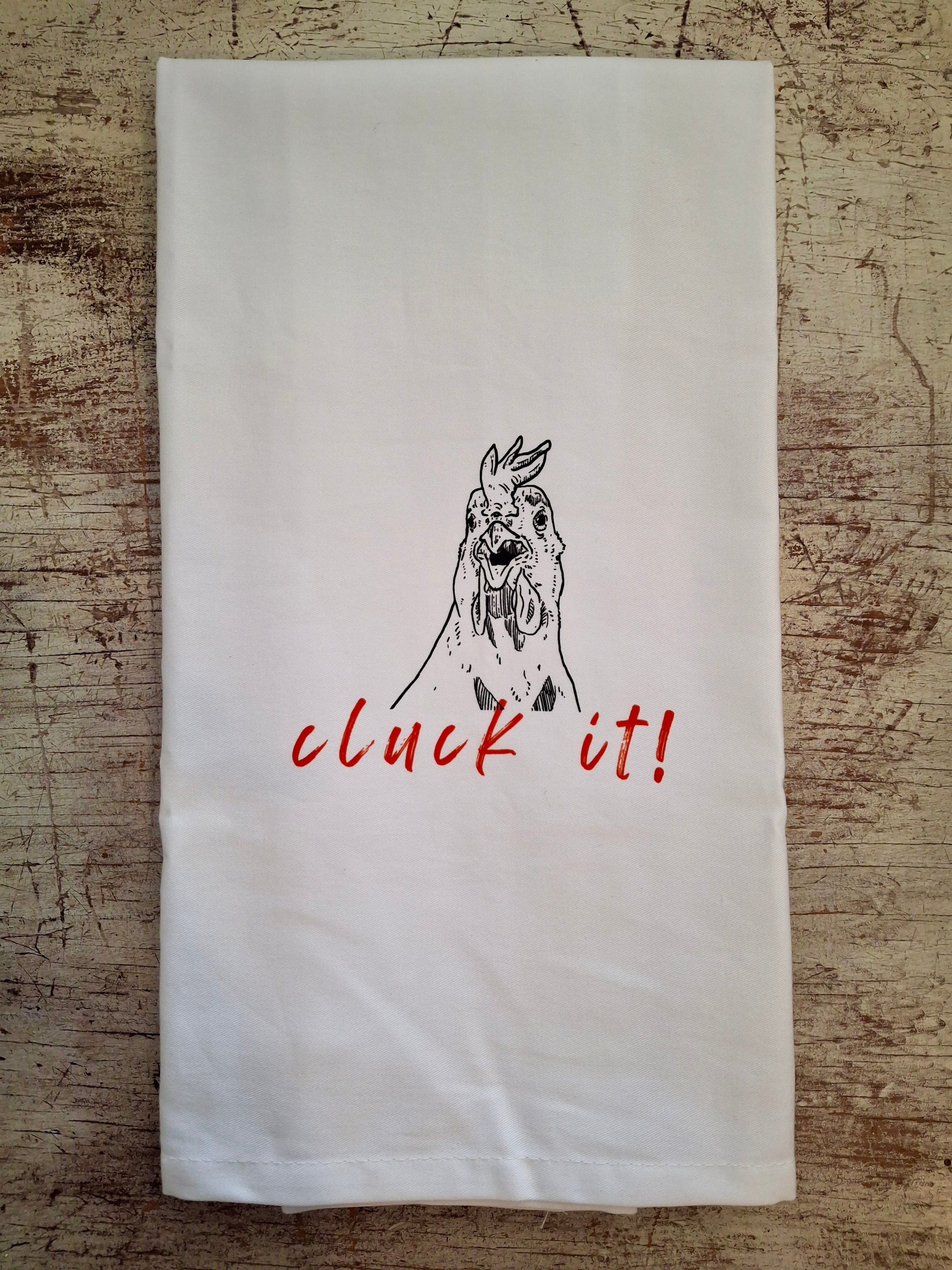 Cluck It (red lettering) - Tea Towel