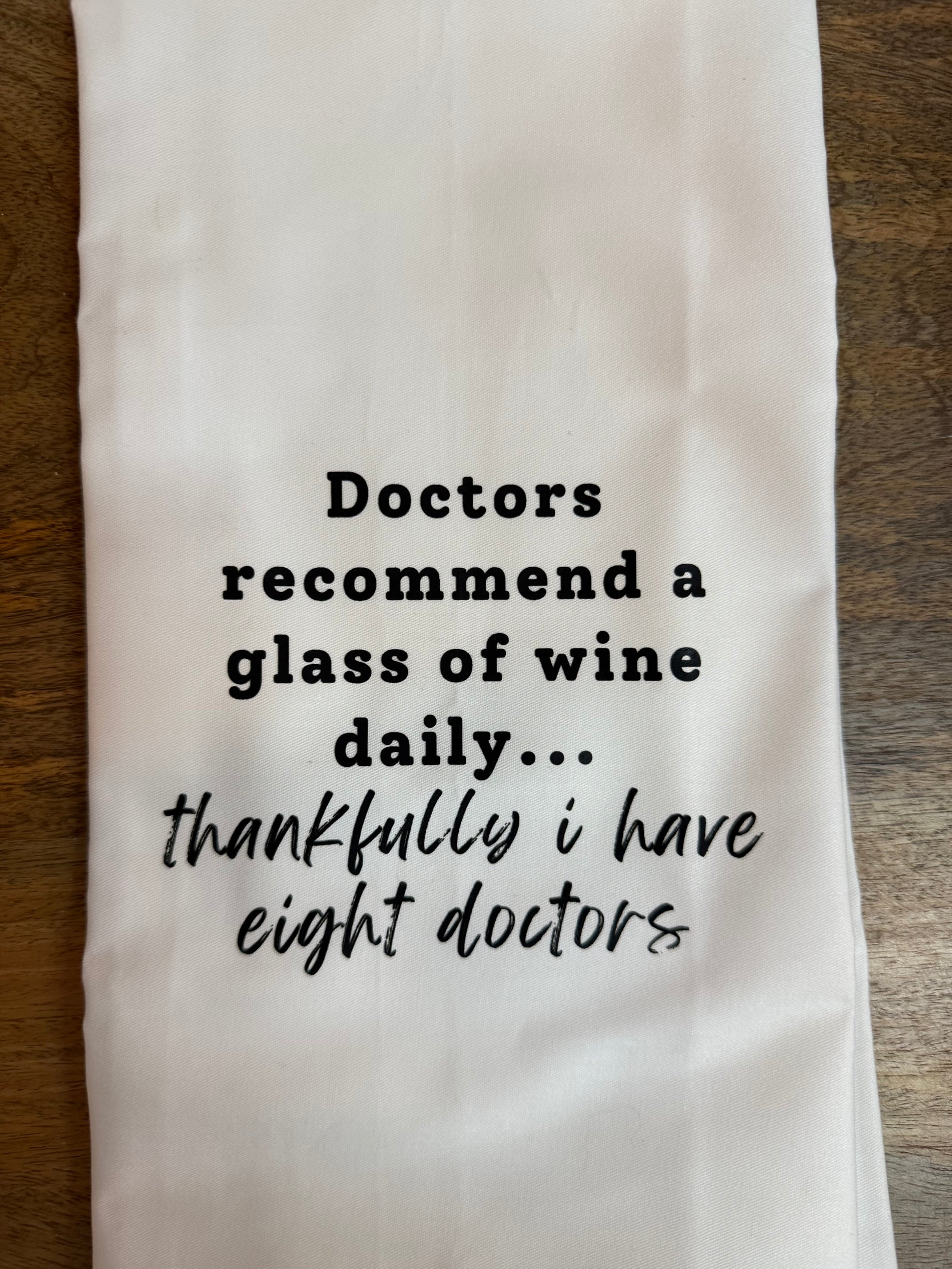 Doctors Recommend A Glass Of Wine Daily - Tea Towel