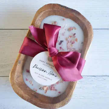 Experience the beauty of a flower market in your own home with our 13oz 3-wick reusable dough bowl candle. Light up the braided cotton wicks and let the delightful scents of Parisian Home fill your space for over 50 hours. Each candle comes shrink wrapped for protection and is beautifully adorned with a decorative ribbon. Don't forget to notice the dried botanicals within the dough bowl - a charming touch to this FRENCH MARKET candle. Made in the USA. PARISIAN HOME: Elevate the ambiance of any space with this vibrant and refreshing scent, bursting with luscious lemon peel and grapefruit, blended with delicate hints of geranium, jasmine, and peach.