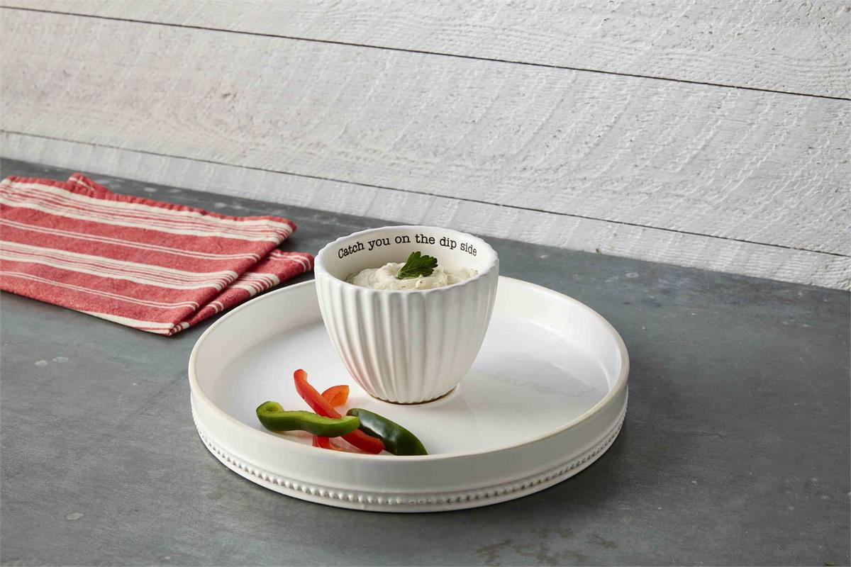 Elevate your snack service with Mud Pie's Beaded Ceramic Server. This versatile piece features a fluted pedestal that can be flipped to create a dip bowl, perfect for any occasion. Make a statement with this elegant and functional addition to your serveware collection.