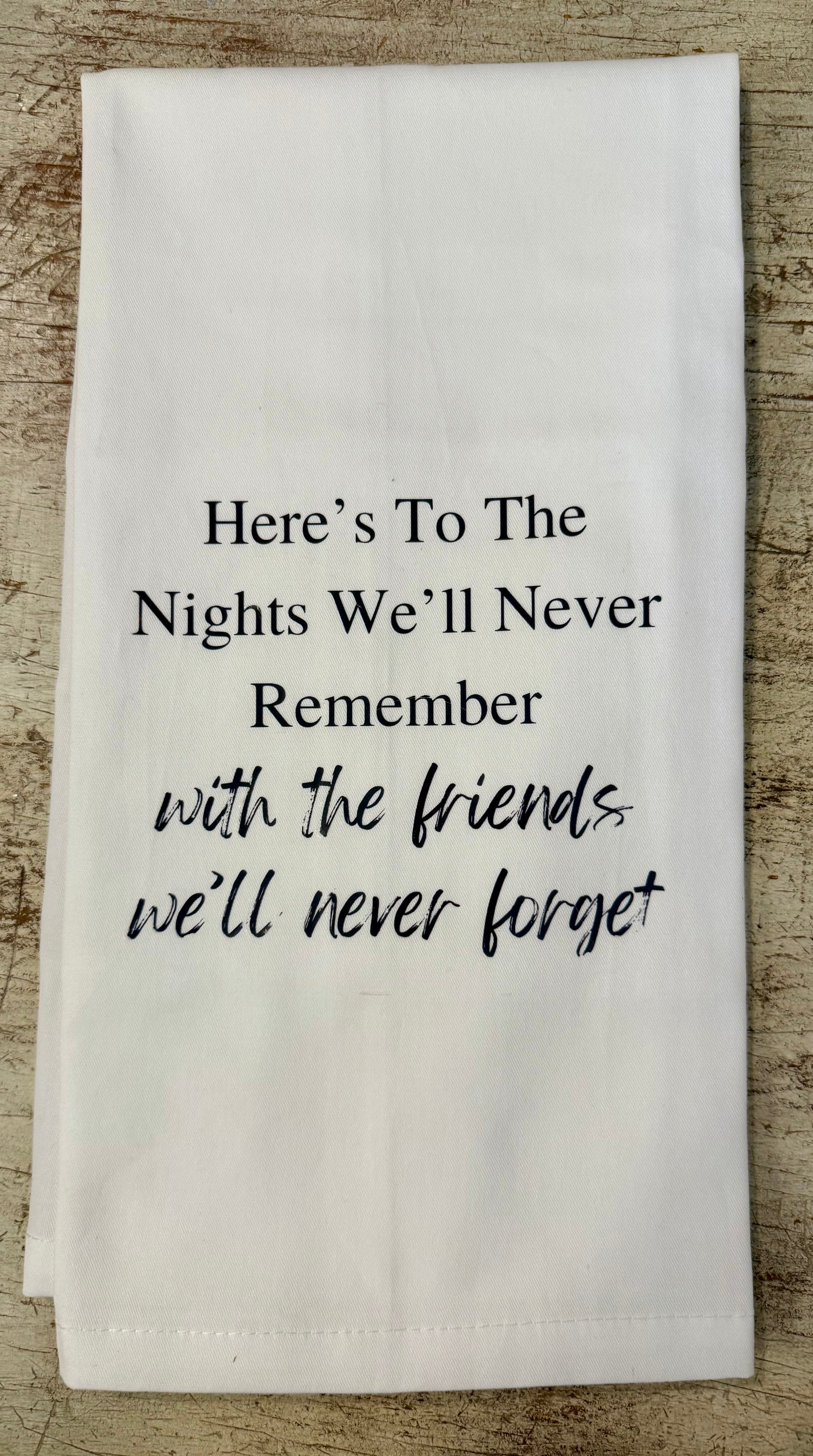 Nights we'll Never Remember Tea Towel